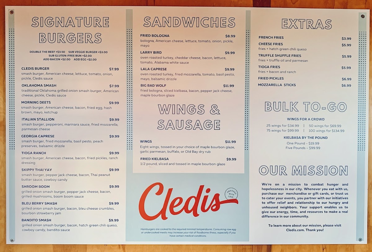 Cledis Burgers & Beer Garden Menu (2025 Update)
