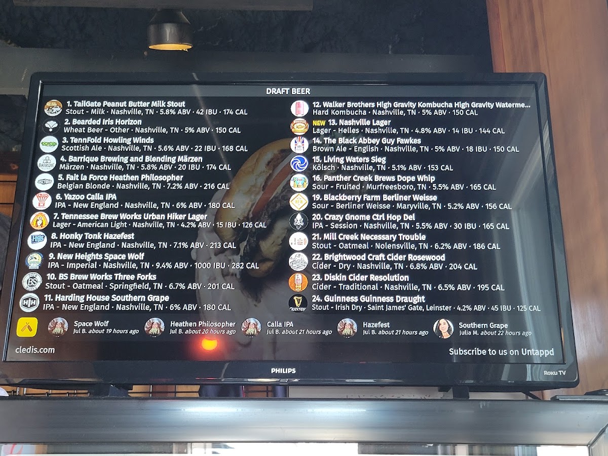 Add to that an impressive selection of local beers, and you have a perfect spot for gatherings. With a fun atmosphere and attentive service, Cledis Burgers & Beer Garden is a must-visit for anyone in Nashville.
